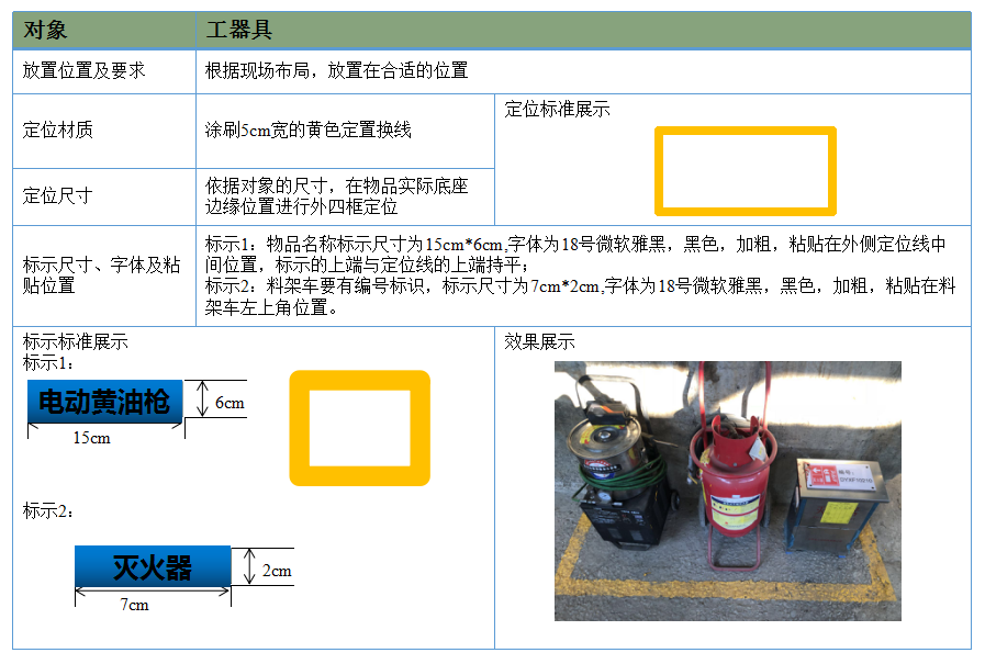 規(guī)定物品堆放、工具放置、通道、班組(個人)工作場地位置。