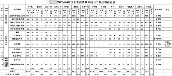 加大區(qū)隊材料成本考核的工資掛鉤權(quán)重。項目權(quán)重保持15%不變,但工資權(quán)重由1%提高到2.5%,相當(dāng)于材料考核在全部五型績效考核項目中所占的權(quán)重達到了37.5%,以此調(diào)動各級人員節(jié)支降耗的積極性。2016年1-5月份材料費  11.61元/噸,比作業(yè)計劃降低2.85元/噸,降幅為19.7%,比年度均衡預(yù)算降低5.57元/噸,降幅為32.4%。
