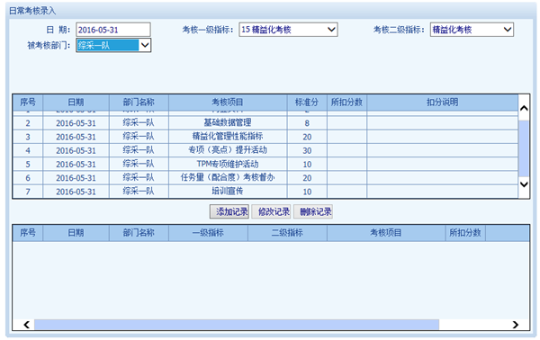 2016年1月份開始,精益化管理正式調(diào)整為一級考核指標(biāo),工資權(quán)重5%,不同單位按照專業(yè)不同下設(shè)二級指標(biāo),考慮到考核平衡性問題,不同單位根據(jù)精益化管理提升空間和考核指標(biāo)數(shù)量不同,二級指標(biāo)數(shù)量、考核指標(biāo)、二級指標(biāo)權(quán)重比例、五型績效加扣分標(biāo)準有所區(qū)分。