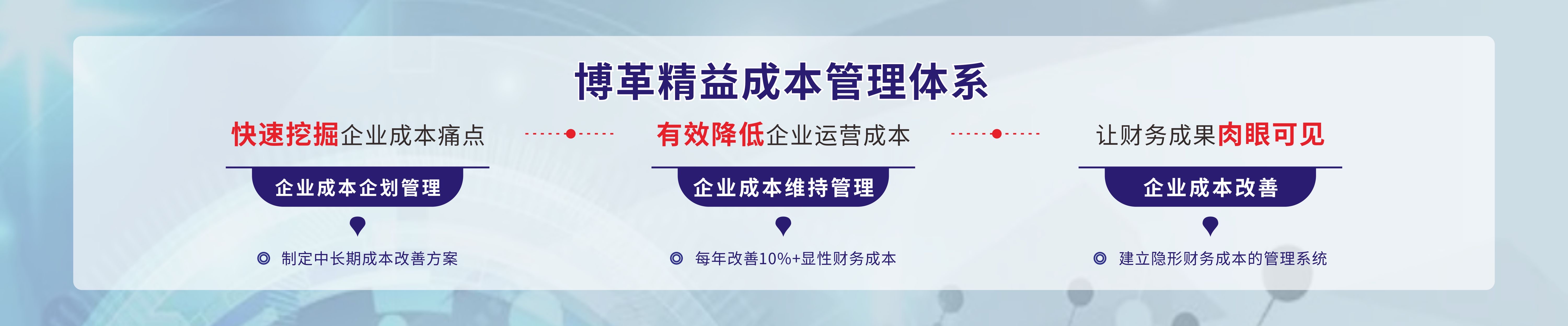 對于每家企業來講成本管理都是其管理重點,但真正把成本管控到位的企業少之又少。其關鍵原因是沒有把成本管理從企業的戰略管理角度進行總策劃。博革咨詢的精益成本管理把成本管理區分成3大部分,即企業成本企劃管理、企業成本維持管理、企業成本改善。