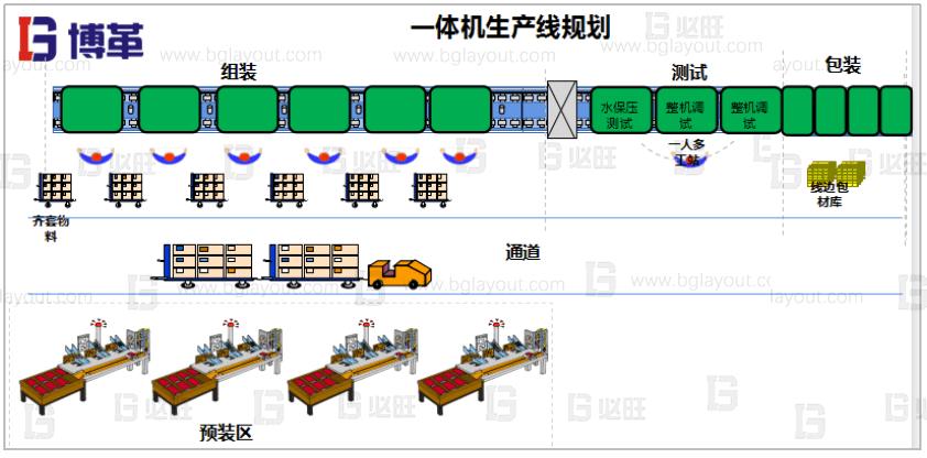 采用模組式作業(yè)模式,由小部裝單元和整機(jī)裝配單元組成,實現(xiàn)柔性生產(chǎn)、保證工廠人均產(chǎn)值高效產(chǎn)出。