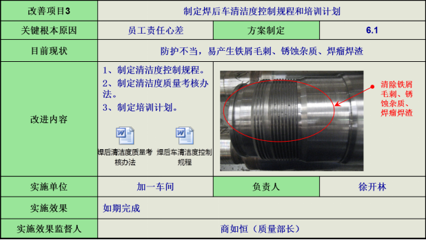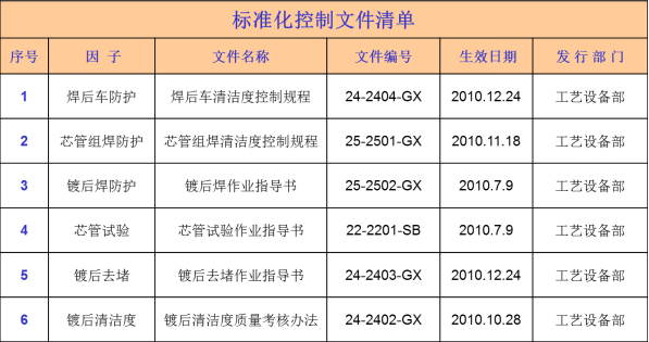 5)芯管組焊方法,針對(duì)芯管焊后不防護(hù)和焊瘤清理問(wèn)題,制定芯管組焊清潔度控制規(guī)程。