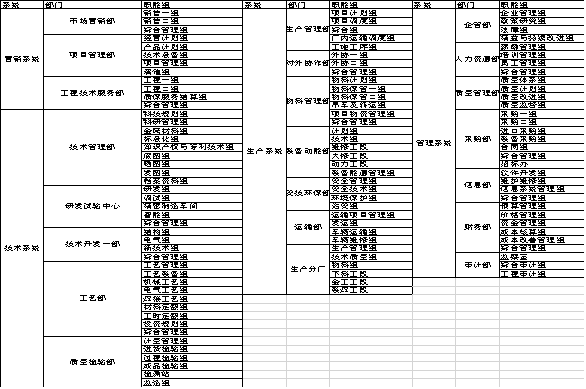 1.4 關(guān)鍵部門的組織職責(zé)梳理,裝備制造企業(yè)通常分為營(yíng)銷,技術(shù),生產(chǎn),管理四個(gè)系統(tǒng),重新梳理各部門組織職責(zé)。