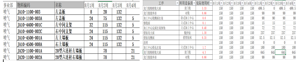 (12)機(jī)加件每日派工和日?qǐng)?bào):班長(zhǎng)更多的是憑借經(jīng)驗(yàn)進(jìn)行每日派工,根據(jù)項(xiàng)目進(jìn)度,工序長(zhǎng)短等。生產(chǎn)周期較長(zhǎng),大型機(jī)加件的周期接近6周。裝配也要1-2個(gè)月,且無(wú)產(chǎn)能測(cè)算。