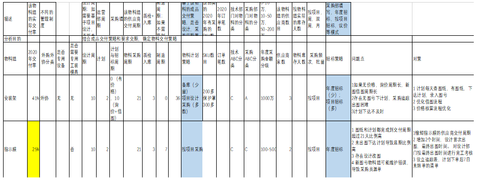 4.2 按物料類別分析交付率與庫(kù)存,改進(jìn)機(jī)會(huì)確定,分析每一類物料的交付率,庫(kù)存與改善計(jì)劃