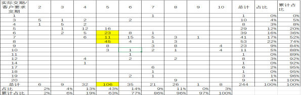 (4)對(duì)三年的數(shù)據(jù)進(jìn)行分析,合同交期是最多的是5個(gè)月交期,實(shí)際執(zhí)行交期是6-8個(gè)月。