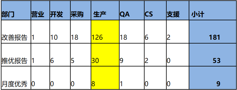 (2)完成各類改善共計(jì)181項(xiàng),革新推優(yōu)53項(xiàng),月度評比優(yōu)秀改善9項(xiàng)。