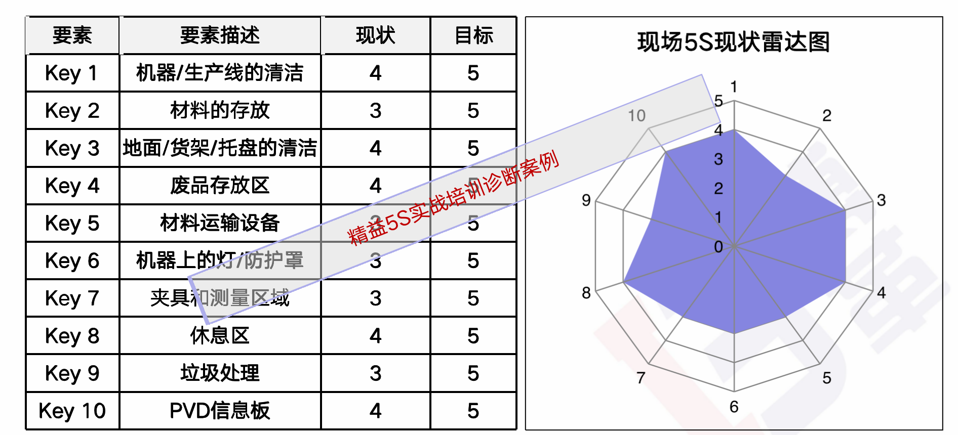 培訓顧問在培訓前,對現(xiàn)場5S問題點進行診斷取景,使培訓講解時更具有針對性,以解決現(xiàn)場的突出問題。